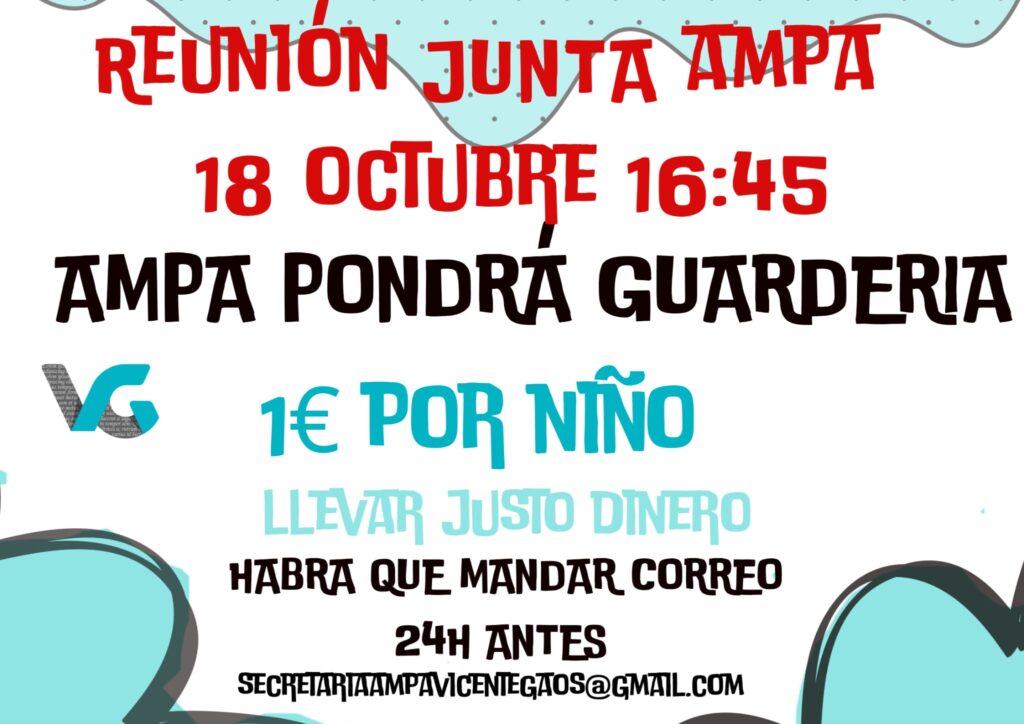 JUNTA AMPA Se convoca la reunión del AMPA el 18 de octubre a las 16:45, habrá servicio de guardería para el que quiera asistir. Acta 2023-10-05 at 11.00.00Descarga